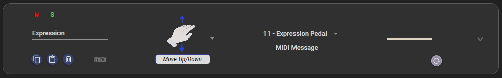 | Slider or Multi Value Setting | Set the value of the slider proportionally by the velocity of the keyswitch press | Set the value of the slider proportionally by the value of the CC message |