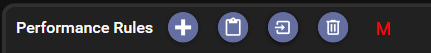 The remainder of the rule header contains the controls by which you configure the basics of the performance rule.